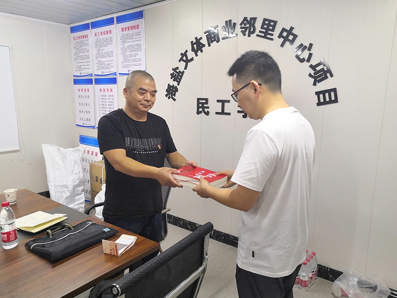 支部書(shū)記向工地黨支部贈(zèng)送學(xué)習(xí)書(shū)籍