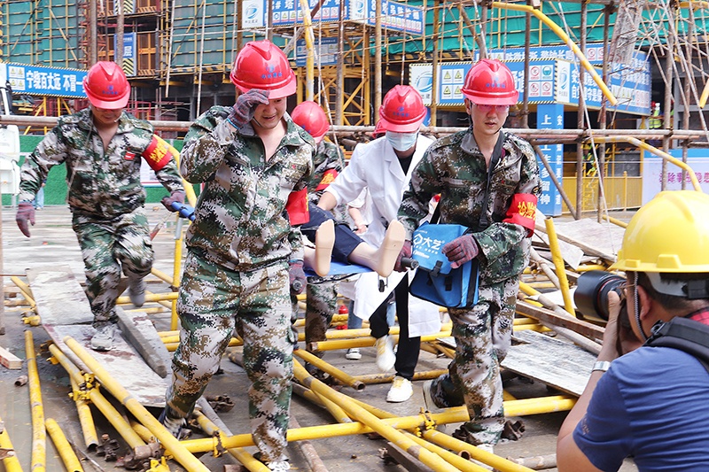 此次演練模擬了“二層樓面混凝土澆筑發(fā)生支模架局部坍塌時兩名工人隨支模架坍塌而墜落”的現(xiàn)場,考察了各組在緊急情況下的協(xié)調(diào)處置和應(yīng)急救援能力?,F(xiàn)場后勤保衛(wèi)組、搶險救援組、醫(yī)療救護組、事故調(diào)查組、對外聯(lián)絡(luò)組協(xié)同作戰(zhàn),快速反應(yīng),圓滿完成了應(yīng)急救援工作。