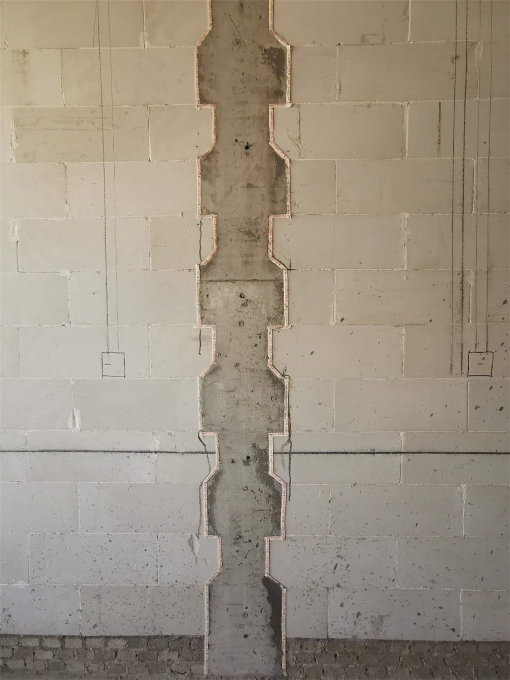 防止構造柱澆筑不密實,在加氣塊上進行倒角
